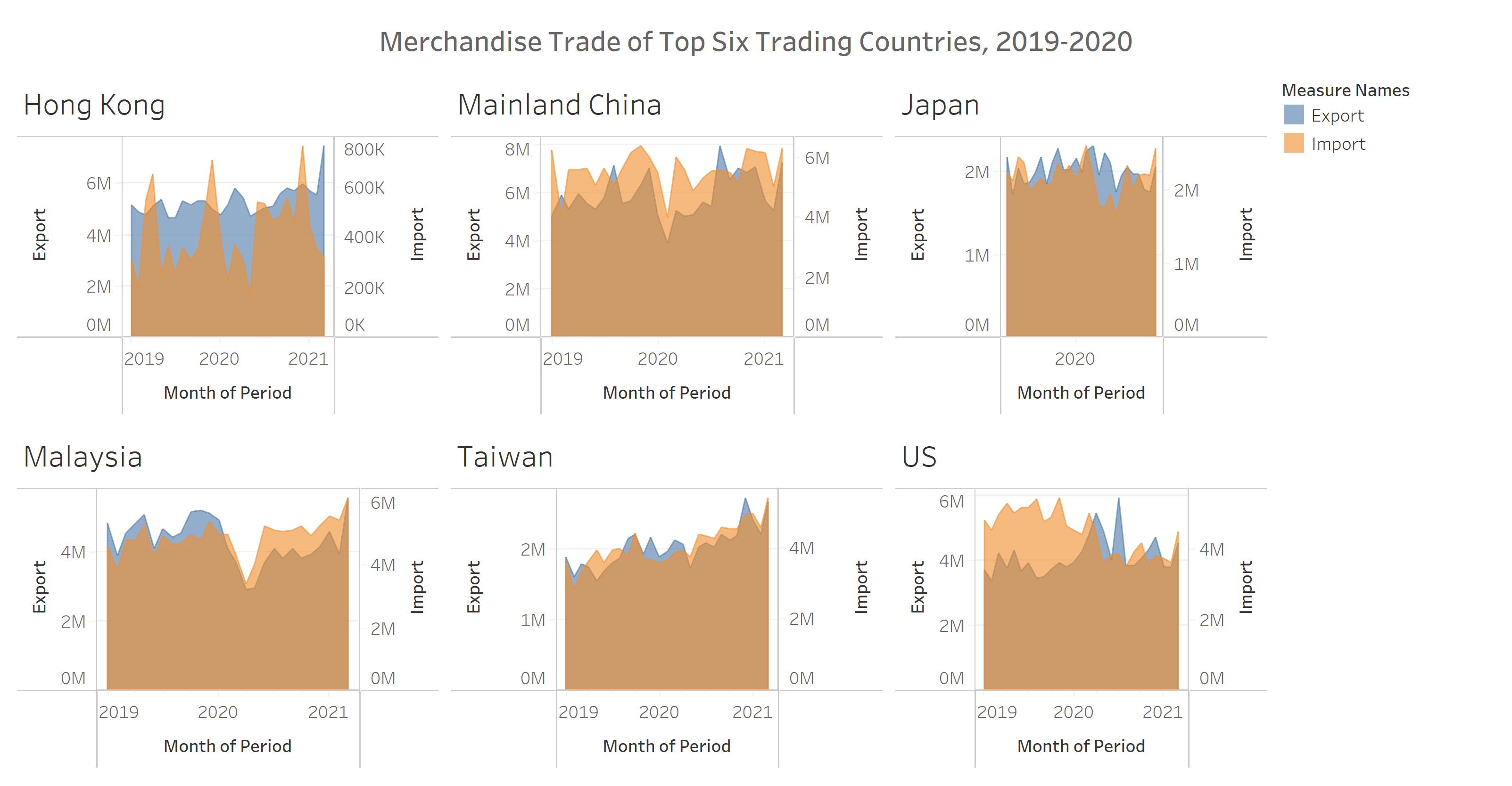 For this makeover, Japan, Hong Kong, Taiwan, United States, Malaysia, and Mainland China are the primary focus and the visualisation is limited to the period of Jan 2019 to Dec 2020.