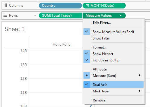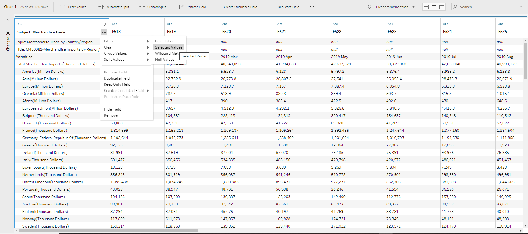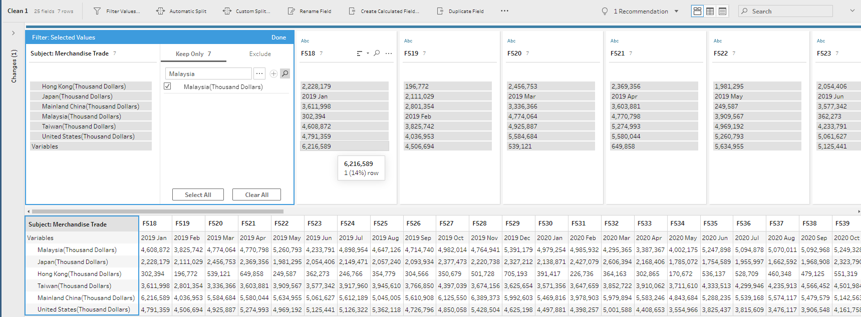 Click on the ellipsis of ‘Subject: Merchandise Trade’ column. Choose ‘Filter’ -> ‘Selected Values’.