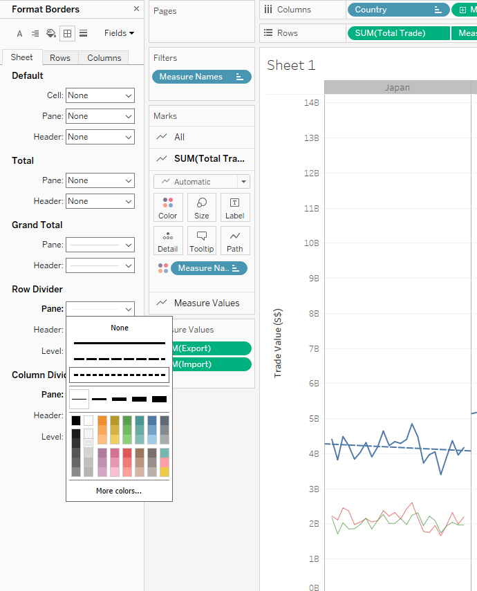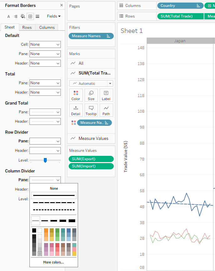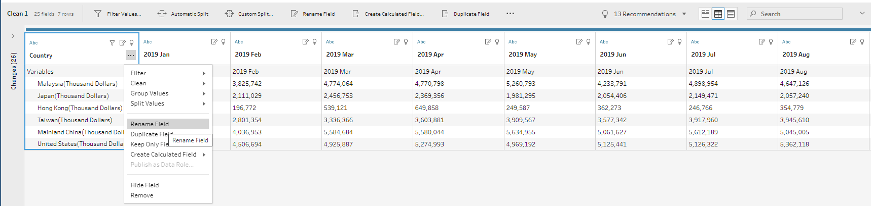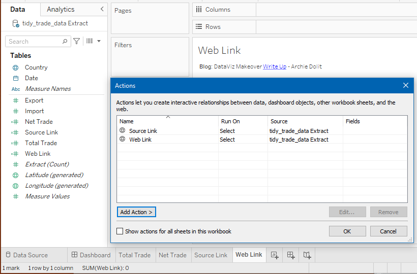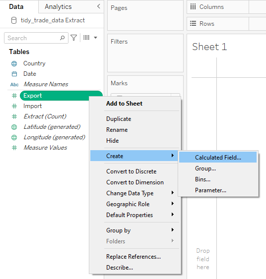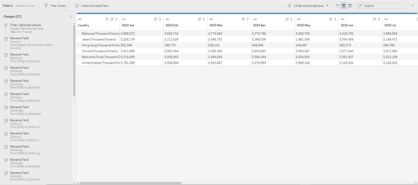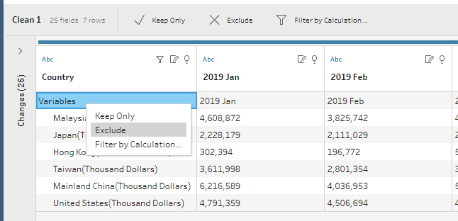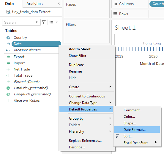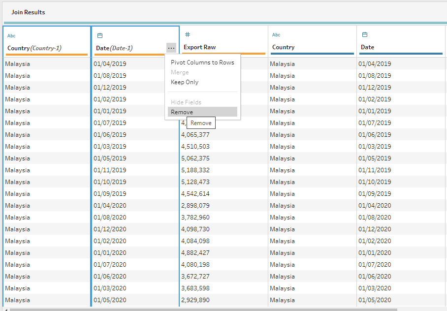 Through data preparation, the raw data has been transformed into a tidy format with only 4 data fields namely Date, Country, Export, and Import which can be easily visualised using Tableau Desktop.