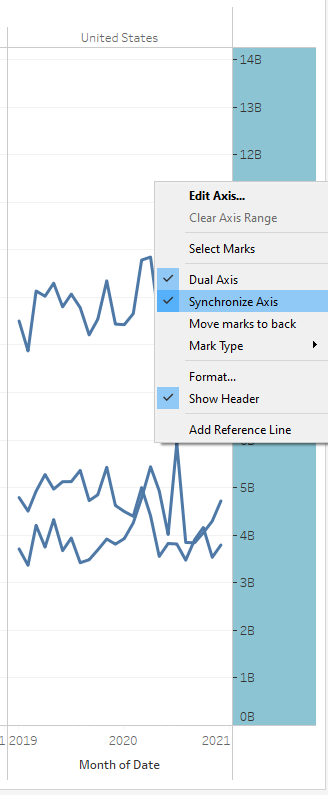 The x-axis title is not consistent with the label. The x-axis indicates ‘Month of Period’ but shows the year 2019, 2020 and 2021. Additionally, there are no tick marks which can represent the months.