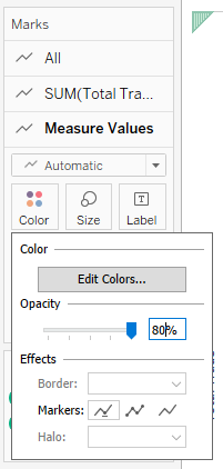The legend title ‘Measure Names’ is not intuitive. The graph does not include annotations to tell interesting data stories.