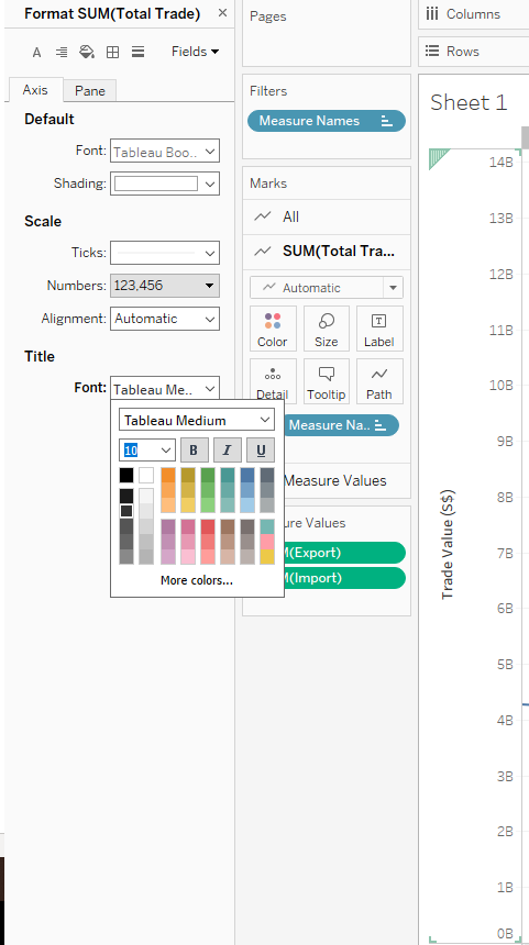 Graphical integrity needs to be improved. The y-axis should be in billion instead of million since the data source indicates “(Thousand Dollars)” so the raw trade values need to be multiplied by 1000.